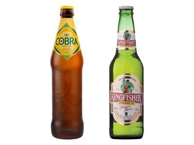 Popular Indian beers such as Kingfisher or Cobra; bottle served.